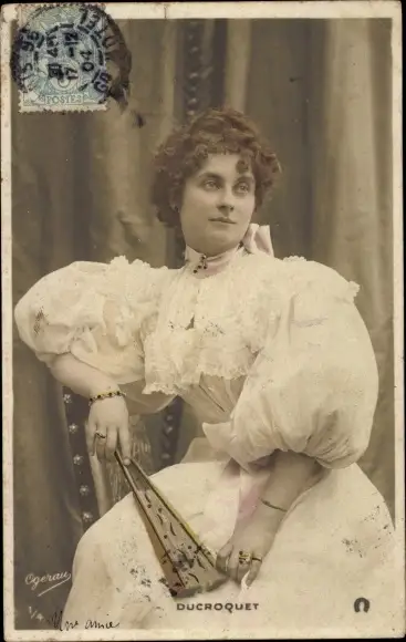 Ak Variete Künstlerin Ducroquet, Portrait mit Fächer