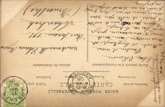 Zustand, siehe Scan, gelaufen, 1908 - ca 9 cm X 14 cm