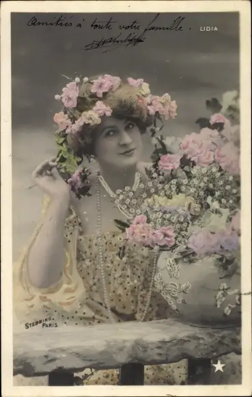 Ak Variete Künstlerin Lidia, Portrait mit Blumen