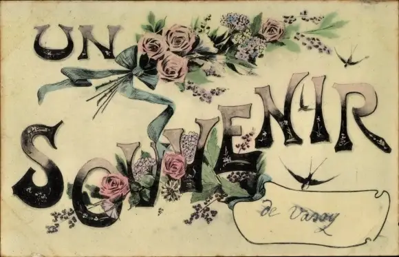 Ak Vassy Calvados, Un Souvenir, Blumenstrauß, Rosen