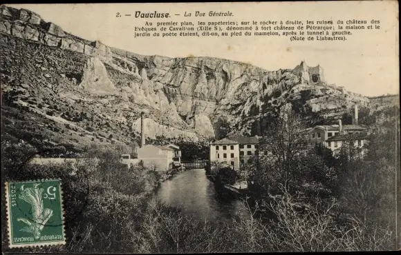 Ak Vaucluse, La Vue Generale, Les ruines du chateau des Eveques