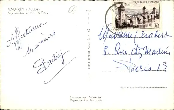 Ak Vaufrey Doubs, Notre Dame de la Paix