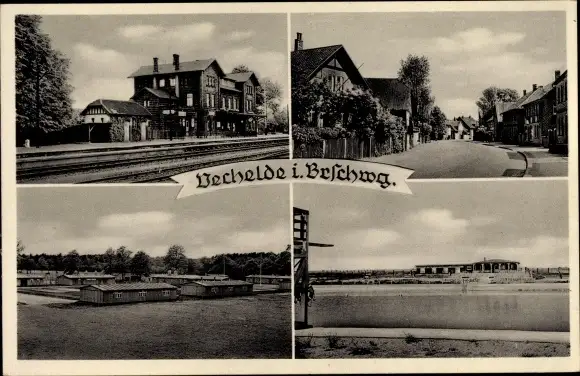 Ak Vechelde Niedersachsen, Bahnhof, Straßenpartie, Freibad, Baracken