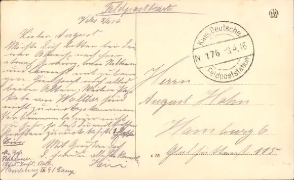 Zustand, siehe Scan, gelaufen, 1916 - ca 14 cm X 9 cm