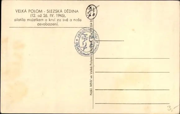 Ak Velka Polom Region Mährisch Schlesien, platila majetkem a krvi za sve a nase