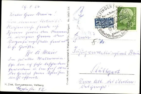 Zustand, siehe Scan, gelaufen, 1954 - ca 14 cm X 9 cm