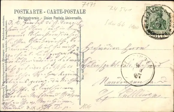 Zustand, siehe Scan, gelaufen, 1907 - ca 9 cm X 14 cm