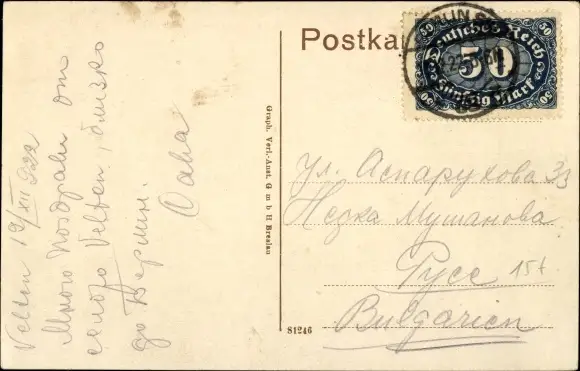 Zustand, siehe Scan, gelaufen, 1922 - ca 14 cm X 9 cm