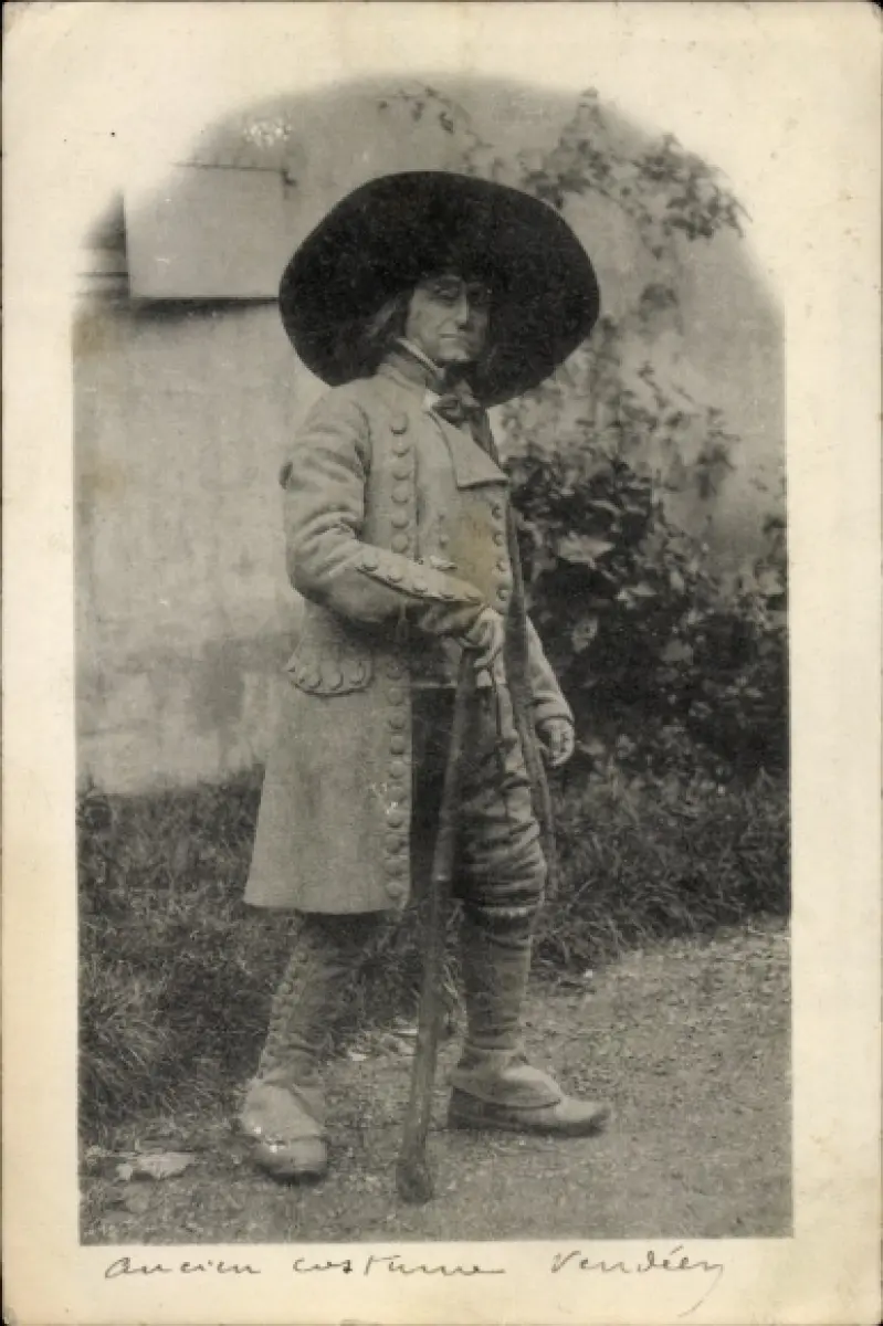 Ak Vendée, Mann in Tracht, Hut, Gehstock