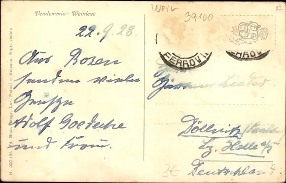 Zustand, siehe Scan, gelaufen, 1928 - ca 14 cm X 9 cm