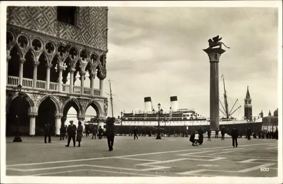 Ak Venezia Venedig Veneto, Markusplatz, Säule, Dampfschiff