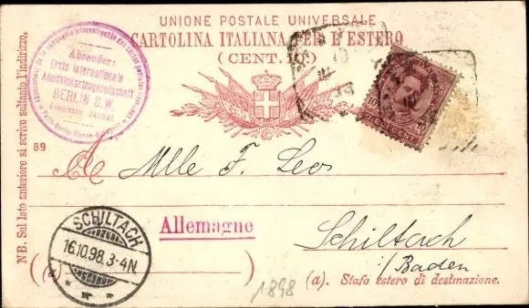 Zustand, siehe Scan, gelaufen, 1898 - ca 14 cm X 8 cm