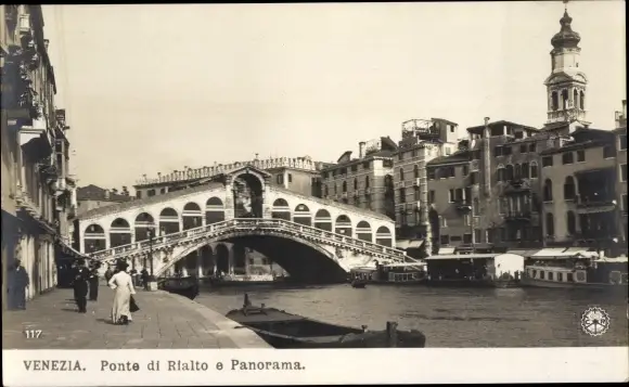 Ak Venezia Veneto, Ponte di Rialto e Panorama, rio