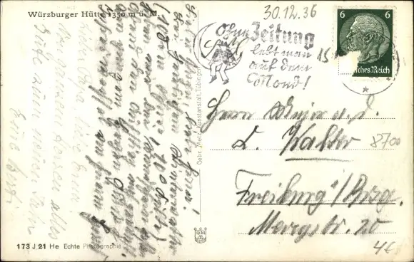 Zustand, siehe Scan, gelaufen, 1936 - ca 14 cm X 9 cm