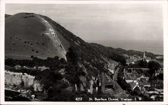 Ak Ventnor Isle of Wight England, Hügel, Wohnhäuser, Kirche, Meer im Hintergrund