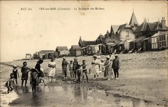Ak Ver sur Mer Calvados, Kinder am Strand
