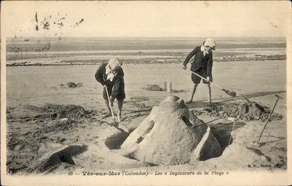 Ak Ver sur Mer Calvados, Kinder am Strand, Sandburg