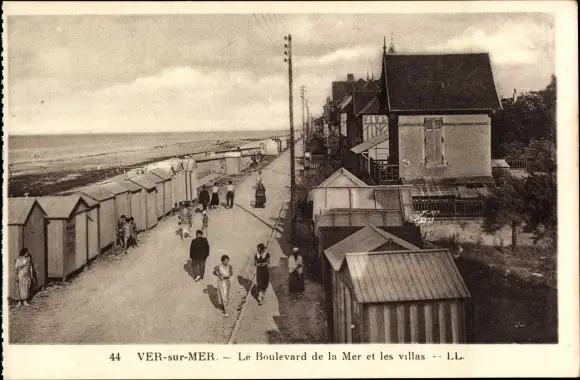Ak Ver sur Mer Calvados, Le Boulevard de la Mer et les villas