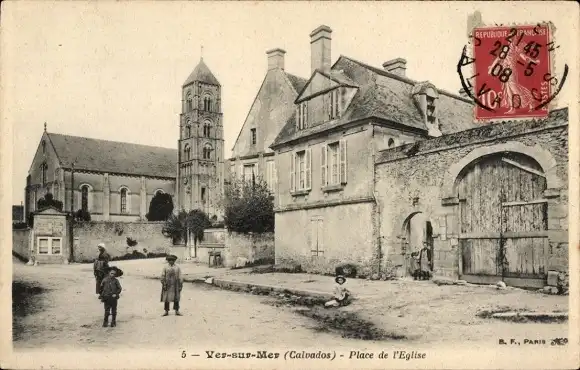 Ak Ver sur Mer Calvados, Place de l'Eglise