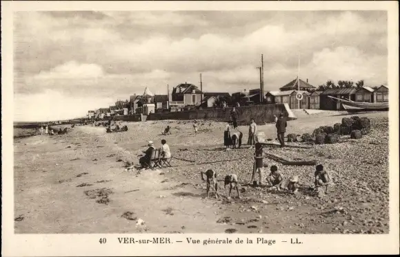 Ak Ver sur Mer Calvados, Vue generale de la Plage