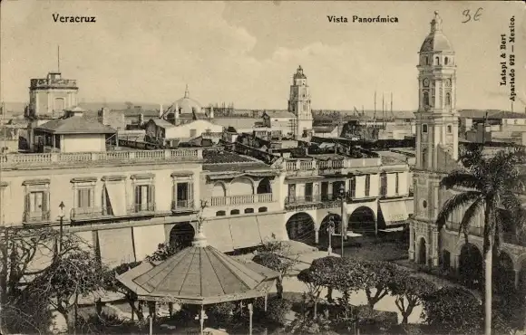 Ak Veracruz Mexico, Panoramablick auf historische Gebäude, Kirchturm