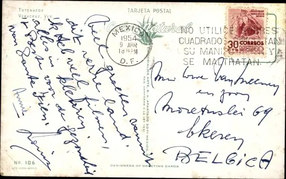 Zustand, siehe Scan, gelaufen, 1954 - ca 14 cm X 9 cm