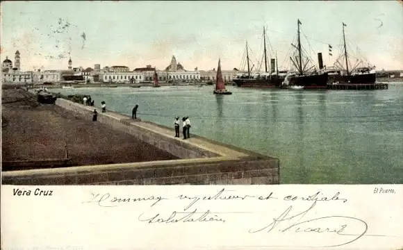 Ansichtskarte, Postkarte, Hafen, Schiffe, Boote, Dampfer, Boot