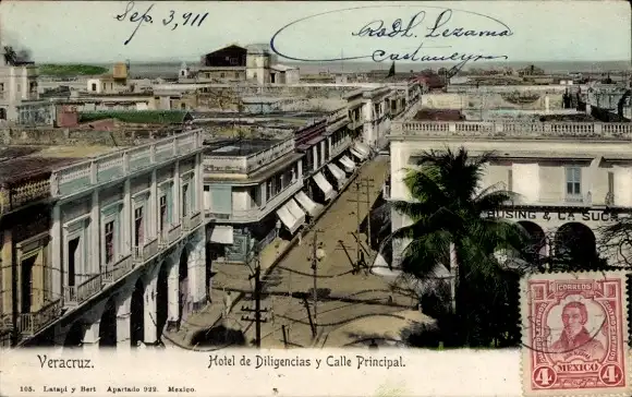 Ak Veracruz Mexiko, Hotel de Diligencias, Calle Principal