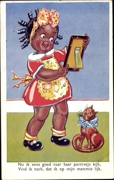 Ak Verärgertes Mädchen, Portrait, Katze mit Schleife