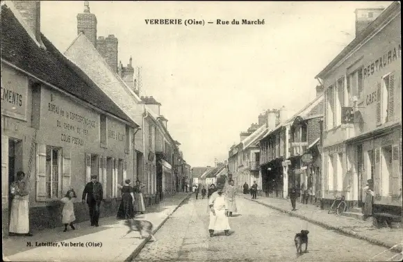 Ak Verberie Oise, Rue du Marche, Restaurant