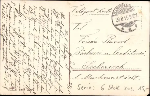 Zustand, siehe Scan, gelaufen, 1915 - ca 9 cm X 14 cm