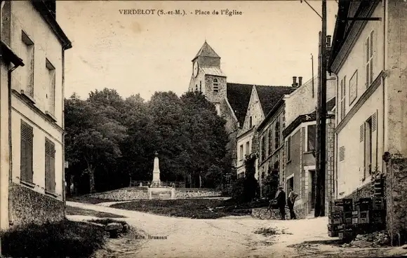 Ak Verdelot Seine et Marne, Place de l'Eglise