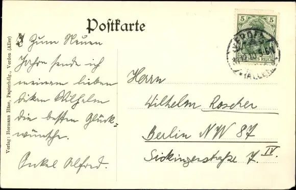 gelaufen 1910, Eckknick links unten, sonst guter Zustand