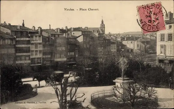 Ak Verdun Lothringen Meuse, Place Chevert, Denkmal