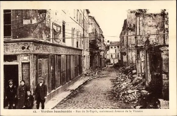 Ak Verdun Lothringen Meuse, Rue du St. Esprit, Avenue de la Victoire, Kriegszerstörungen, I WK