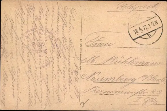 Zustand, siehe Scan, gelaufen, 1917 - ca 14 cm X 9 cm
