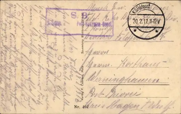 Zustand, siehe Scan, gelaufen, 1917 - ca 14 cm X 9 cm