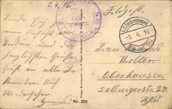 Zustand, siehe Scan, gelaufen, 1916 - ca 14 cm X 9 cm