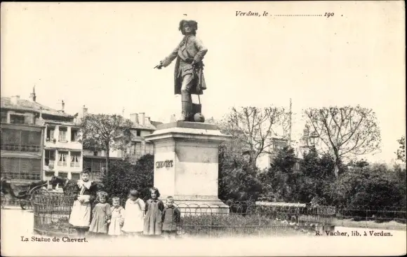 Ak Verdun Meuse, La Statue de Chevert, Kinder