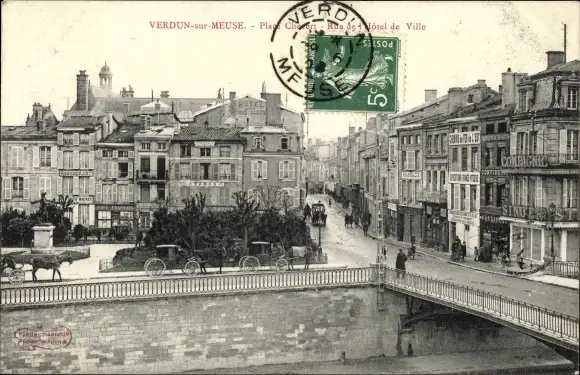 Ak Verdun Meuse, Place Chevert, Rue de l'Hotel de Ville