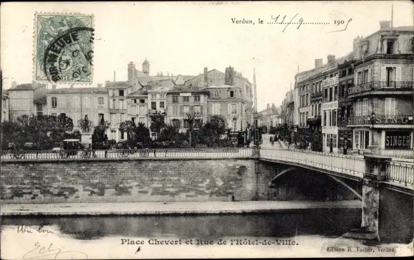 Ak Verdun Meuse, Place Chevert et Rue de l'Hotel de Ville