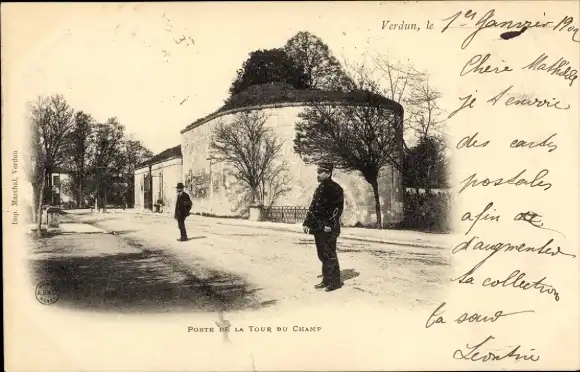 Ak Verdun Meuse, Porte de la Tour du Champ