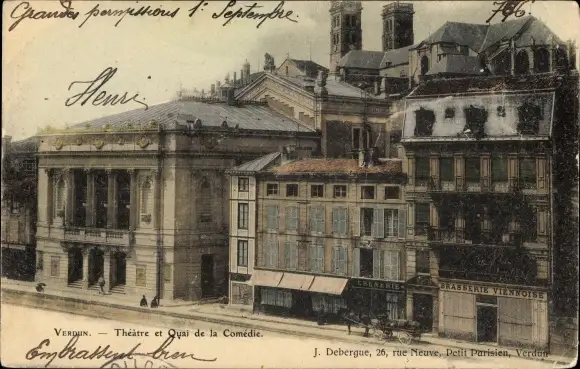 Ak Verdun Meuse, Théatre et Quai de la Comédie