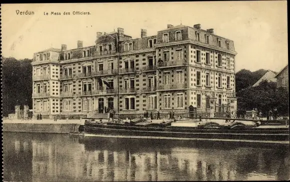 Ak Verdun Meuse, le Mess des Officiers, Kanal, Frachtschiff