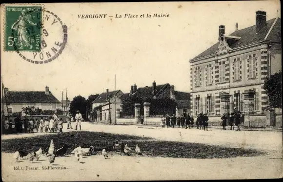 Ak Vergigny Yonne, La Place et la Mairie