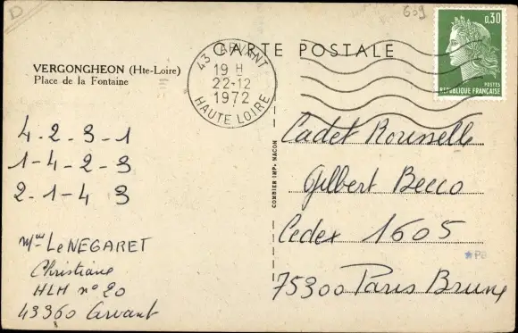 Ak Vergongheon Haute Loire, Place de la Fontaine, oies