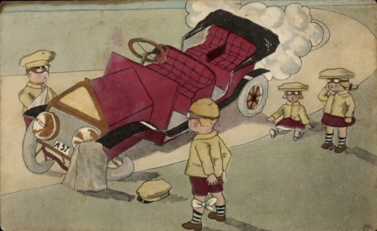 Ak Verkehrsunfall, Autounfall, Beschädigtes Auto, Kinder