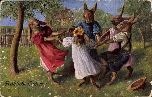 Ak Vermenschlichte Kaninchen, Tanzende Tiere