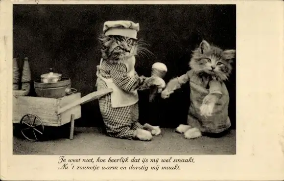 Ak Vermenschlichte Katzen, Eisverkäufer
