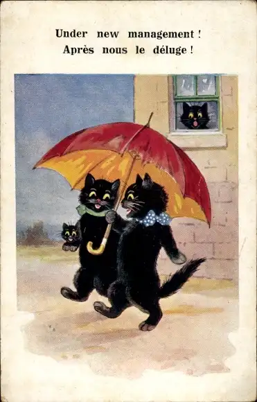 Ak Vermenschlichte Katzen mit einem Regenschirm